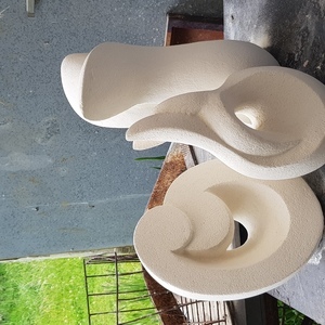 Finished sculptures are smoothed with sand paper, and sometimes left with exagerated texture. Carla applies a water suspended silicon cost to slow down moss and lichen growth in the weather.